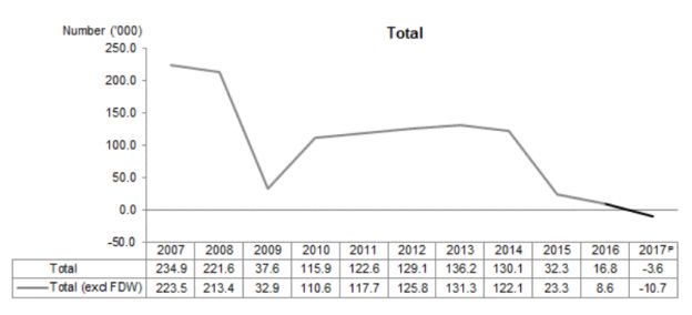 但,本地就业人数却增加了大概2万多人,几乎是2016年本地就业增长人数的一倍。