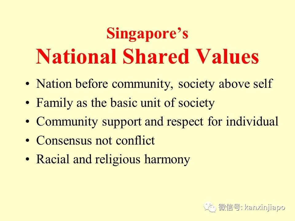 新提出的“五大共同价值观”包括: “国家至上,社会为先;家庭为根,社会为本;社会关怀,尊重个人;求同存异,避免冲突;种族和谐,宗教宽容。” 可以看出其核心精神仍然是儒家伦理。经过几年的实验,教育当局终于体会到不必以儒家之名,仍然可以推行儒家伦理。