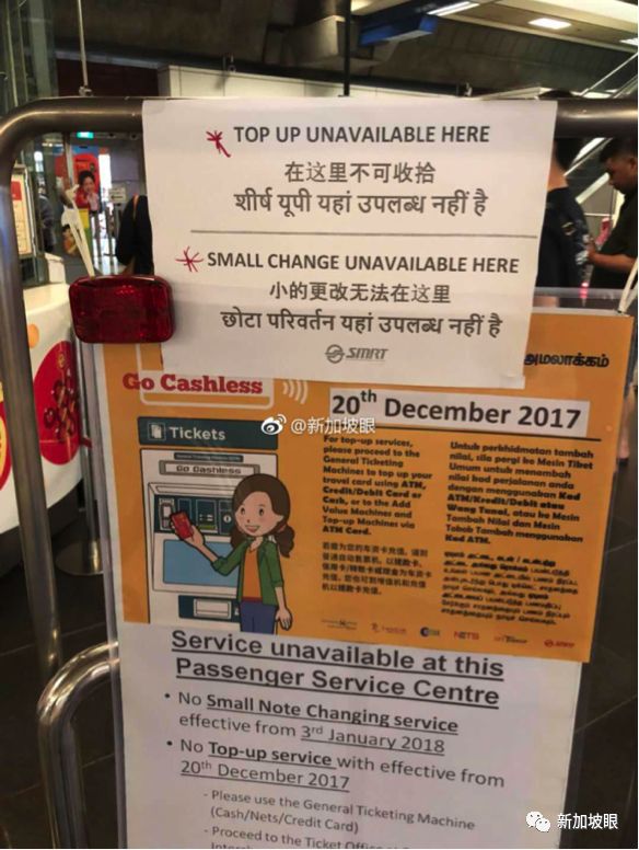 网友给我们发来的新加坡某地铁站乘客服务中心张贴的告示: