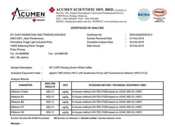 并亮出了成分检测表,表明他们所生产的白咖啡不含有毒物质: