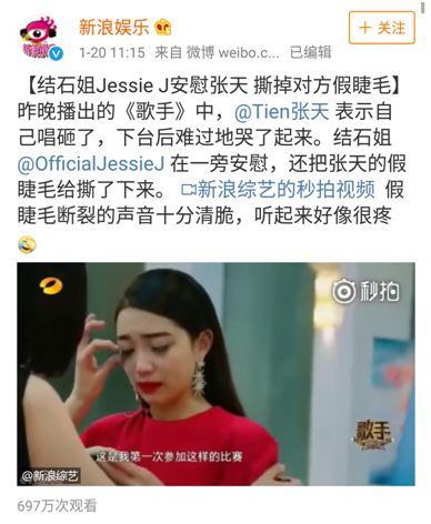 但,她非常真实的呈现了“做自己”的个性。没有偶像包袱的她,向来不按套路出牌,耿直、搞笑的性格十分圈粉——因为被结石姐撕掉了睫毛上了热搜: