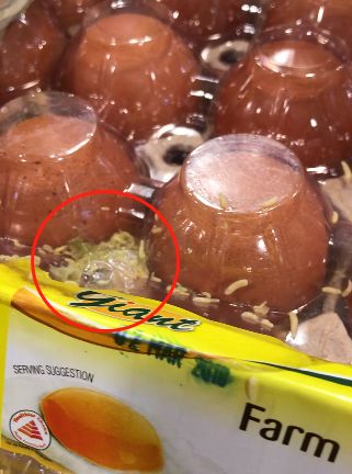 前两天,有网友在淡滨尼Giant超市买鸡蛋时,惊见鸡蛋上密密麻麻的全是蛆虫和虫卵!