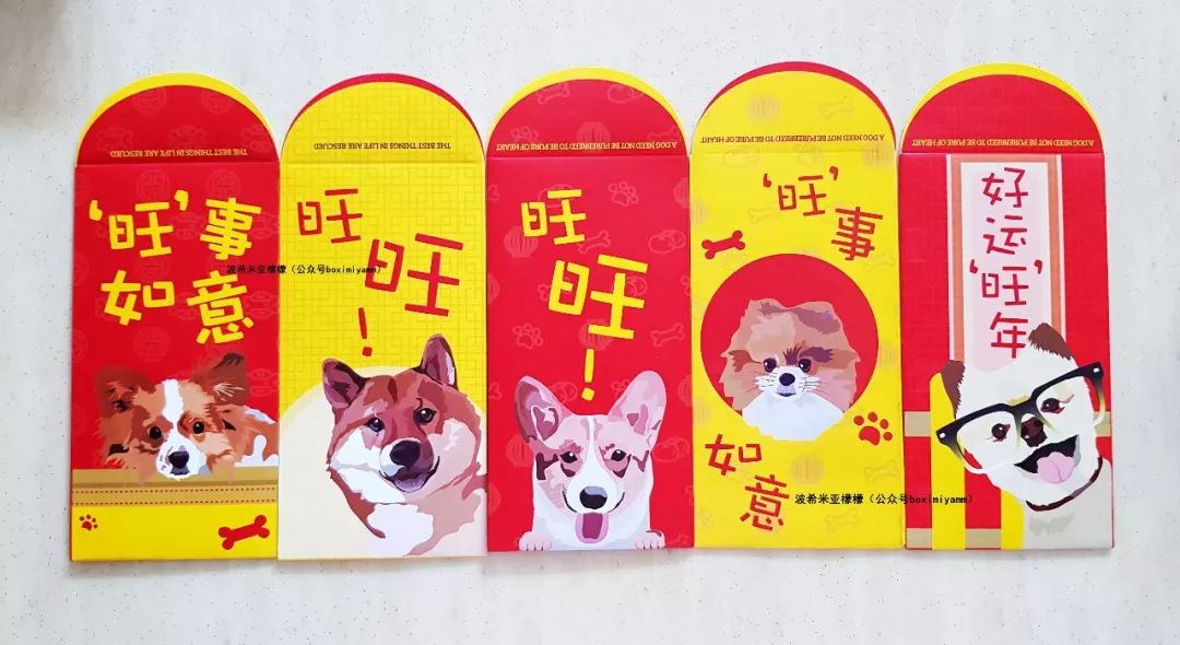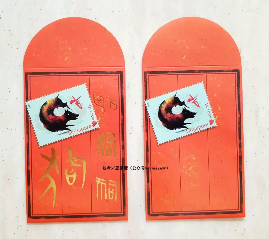 接着来看看今年的各种大狗小狗,你觉得哪个最漂亮?最特别的一枚是生肖狗邮票红包封,而且还有一枚错版,在收藏界一般印错的邮票、首日封等都会物以稀为贵,这枚忘了烫金字的红包封也是相当稀罕。