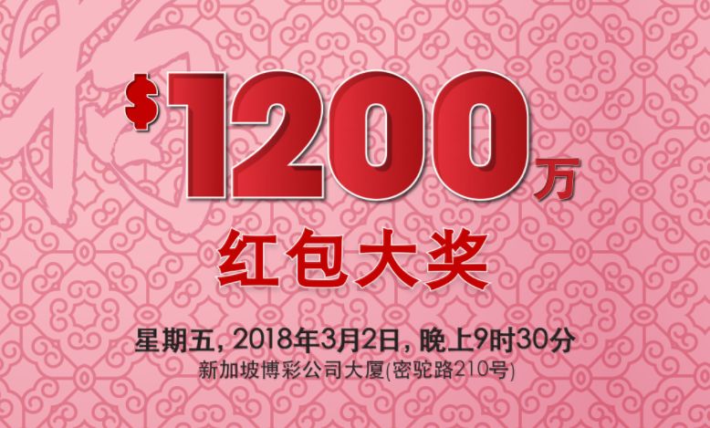 今年的奖金有1200万,将于今天晚上9点半在新加坡博彩公司总部开彩,最后的下注截止时间是晚上9点整。