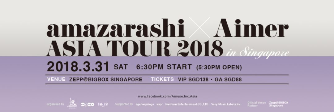 日本歌手Amazarashi和Aimer 2018亚洲巡演 —— 新加坡站