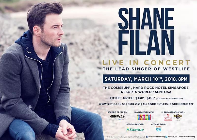 备注:这将是Westlife团队在2012年解体后,Shane Filan首个个人亚洲巡演!