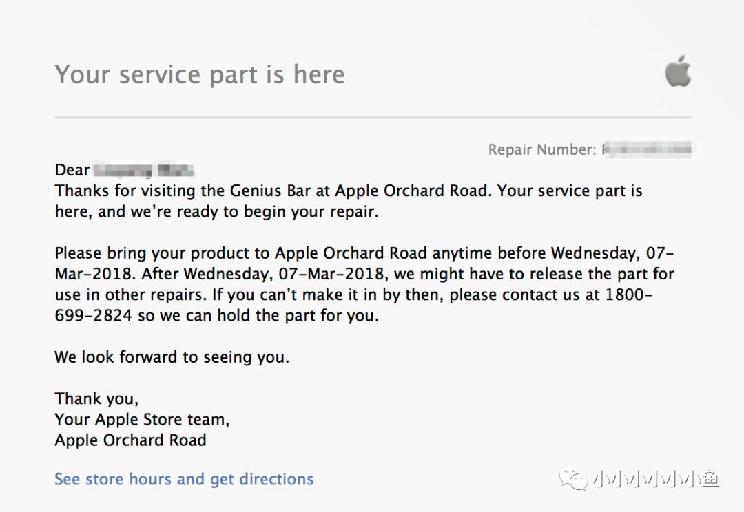 当你确认电池有货之后就可以去Apple Store了,Genius Bar做一些基本检测之后你的电话就被送进维修啦,大概3个小时之后可以现场取,当然如果你没有时间也可以约后一天取。