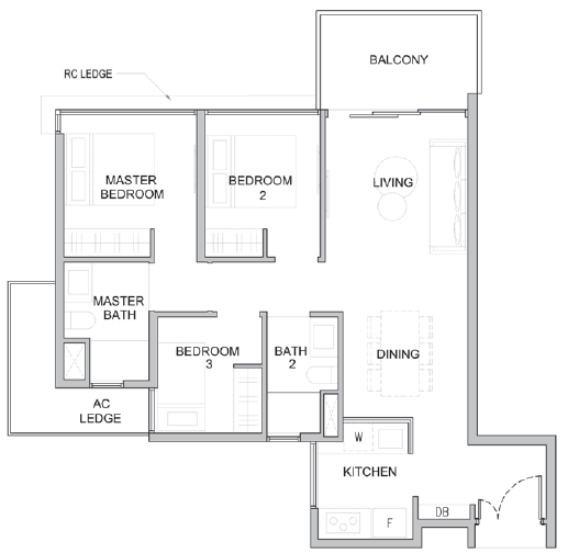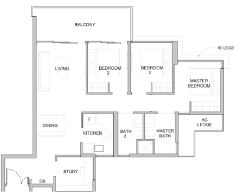 ▼限量版3卧房户型,布局简洁明快,有效利用空间,三卧双卫无浪费,室内面积79平方米起(850平方英尺),售价$114万起。