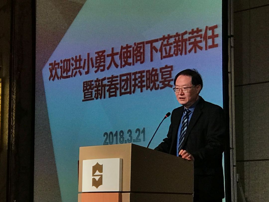 晚宴上,新中友协会长潘国驹教授代表主办方致辞。他首先对洪小勇大使伉俪表示欢迎。