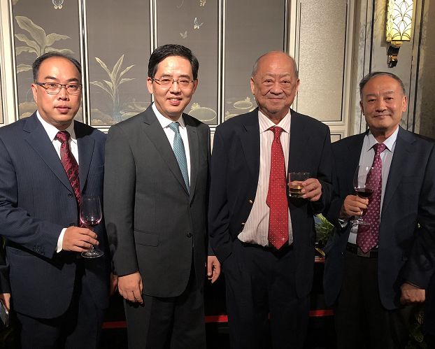 左起:“新加坡眼“董事经理许振义博士、洪小勇大使、新中友好协会会长潘国驹教授、新中友协理事及新加坡国际旅行社总经理王守志