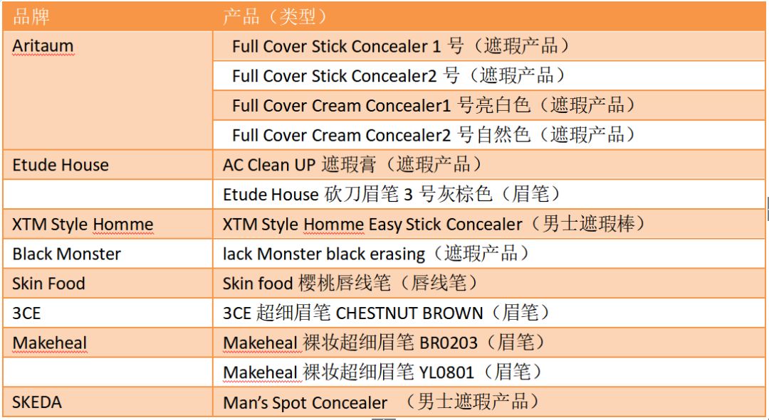 除了上述眉笔和遮瑕棒,还有以下产品也涉及重金属超标: