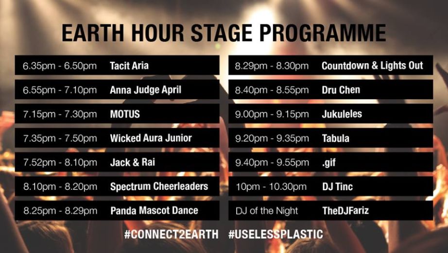 除了熄灯一小时以外,世界自然基金会还在3月16日至3月25日期间,举办了很多其他有趣的活动,地点在滨海湾浮动舞台附近: