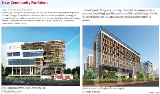 根据2020年的政府规划方案,东北区将发展榜鹅创新中心和兴建大学城。而在后港,除了前面提到的建造新的交通枢纽,实里达航空园第三阶段的竣工,将提供大量就业机会,推高这一带的租金。可以想象这一区域的发展将生机勃勃、潜力巨大。建设中的盛港医院(Sengkang Hospital)在今年开放。这座医院拥有500-600个床位,不仅方便了附近居民,也提供额外租赁机会,提高公寓出租率。根据“再创我们的家园”(Remaking Our Heartland,ROH)计划,今后几年在后港将有大批基建项目改善这一带的各项设施,如”Our Town Centre”、“Our Homes”、“Our Outdoor Playgrounds”和“Our Heritage”等,为这些地方注入新的活力。实龙岗也将有新的商业发展计划,成为实龙岗亚区域中心的一部分。实里达航空园预计将提供1万份工作,包括高技能的工作机会。另外,Lorong Halus和defu industrial park将被兴建成为新的工业区。东北区的居民在未来将有更多的公园和绿地,如邻里公园、位于柯尼岛的新的区域性公园和连接环岛的公园步道等。