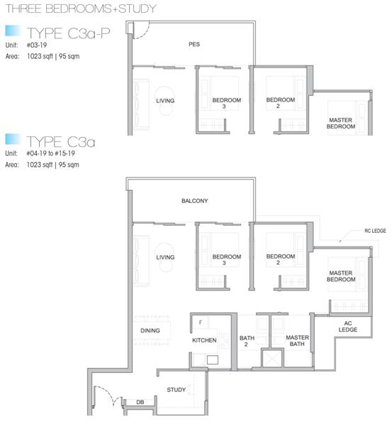三卧室加书房,套内面积95平方米(1023平方尺)。平均售价约1,338元/平方尺,整套售价从1,368,301元起。特点与三卧室相似,户型大门入口有大玄关,入口与厨房餐厅等完全隔开,从大门入口处完全看不到室内空间。入门后往右转就是书房,再进去就是厨房。其余结构与三卧室相似。这样的户型非常适合有1-2个小孩的夫妻。除了自住,也适合出租给有家庭的中高端专业人士。