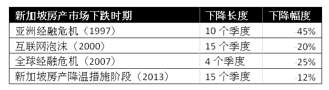 但是作为个人投资者而言,是否现在就急于入场,抓住市场上升趋势,还是不愿意承担风险,放弃这一次的上涨周期?当然这是萦绕在每一个投资者脑海中犹豫不决的百万级的投资。相信,对于大多是投资者而言,他们坚信的是市场经历了15的季度的连续下跌,市场是时候反弹一下了,不是现在也不会远了。因此,吴洲在这里总结一下新加坡房产市场四次下跌历史数据,以供大家决策使用:
