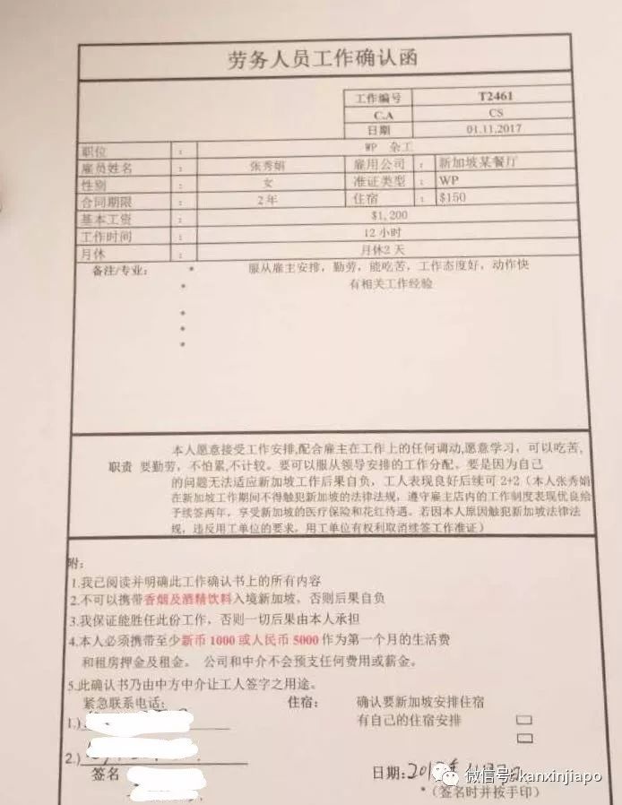 中介表示今晚签约后将和国内的这个黑心中介讨要中介费。经过一番折腾,这位女士新加坡的打工之路就这样开始了…