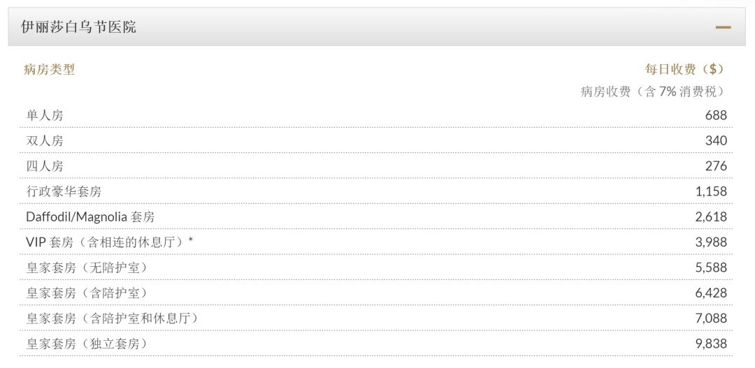 中国AIA提供的高端医疗保险,也包括新加坡的伊丽莎白医院。