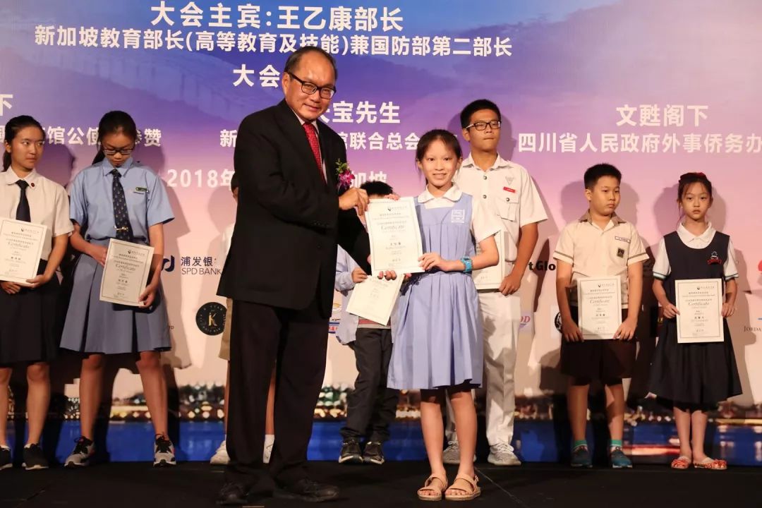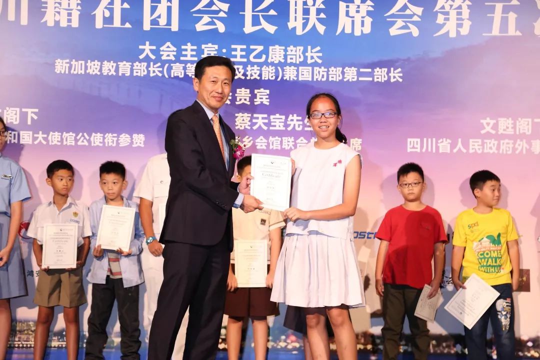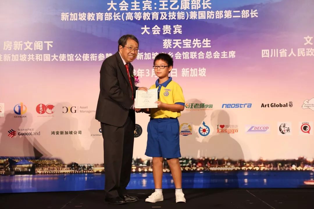 (天府会顾问,南洋理工大学名誉校长徐冠林教授, 为表现优异的小朋友颁奖)