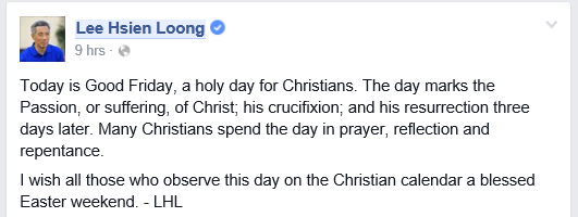 李显龙总理早就告诉大家了:星期五是耶稣受难日,基督教徒的圣日。这一天是纪念耶稣所受的苦难和三天后的复活。愿所有基督信徒度过美好的复活节周末!
