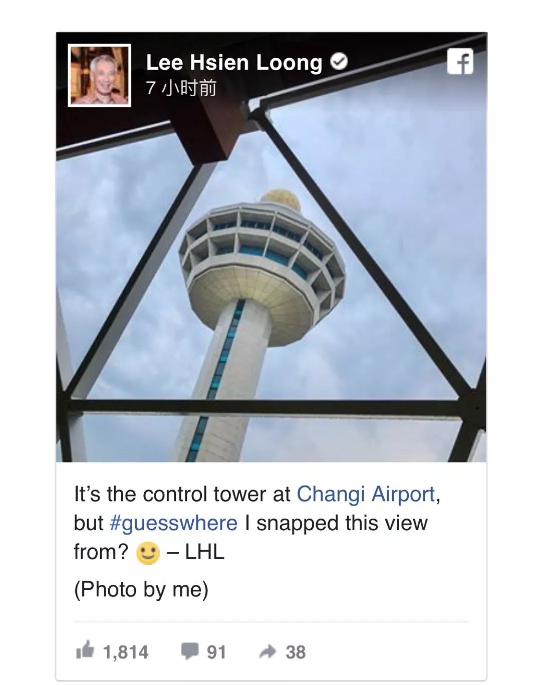 随后,他公布了答案,说:“这是挺难猜的,因为这个地方还未对外开放!”原来,这是昨天(12月15日)总理在樟宜机场参观17亿新币打造的星耀樟宜(Jewel)时,从里头所拍摄的机场控制塔。