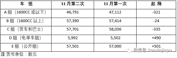 新加坡最新的拥车证(也叫车牌,英文名COE),5个组别的11月第二次出价,相比半个月前的第一次出价,有升有降,可谓“几家欢喜几家愁”。