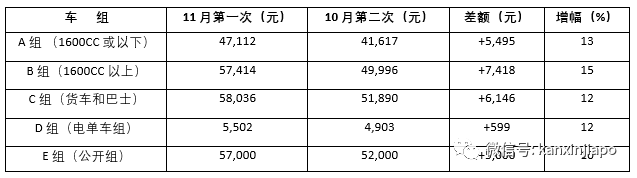 这相比11月的第一次出价比上一次的全线飙升,尤其是B组(俗称的大型豪华车组)价格猛涨了15%,已足够让潜在买家松口气了!