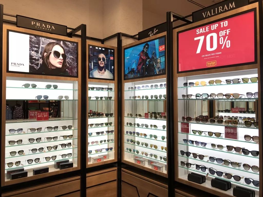 再往里走,就会看到大牌眼镜👓展示区,多是刚刚从专柜下架的季节性款式,5-7折不等。品牌包括Prada、Bottega Veneta和Ray-Ban。