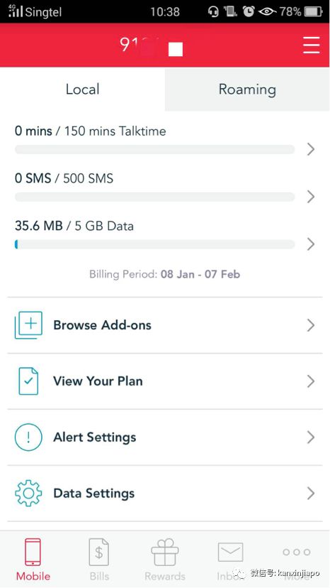 想要设置流量提醒功能,点击Alert Settings,然后点击Receive alerts by SMS最后再点“Save”,这样在用到90%流量的时候Singtel就会发短信提醒你啦!