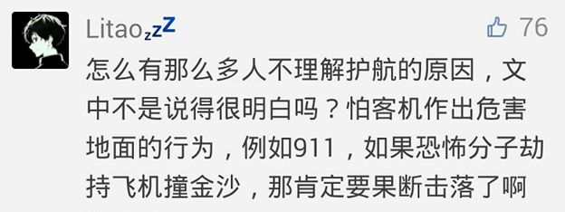 而第二个原因是在紧要关头做出艰难的决定,当机立断将客机击落到海里,以免客机坠落在城市上空,造成更大面积的伤亡。