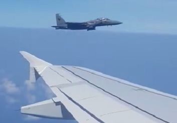 这也就是为什么,当大家看到有两架战机飞在他们旁边时,许多乘客都很兴奋,纷纷掏出手机拍照,还以为是战斗机只是路过而已: