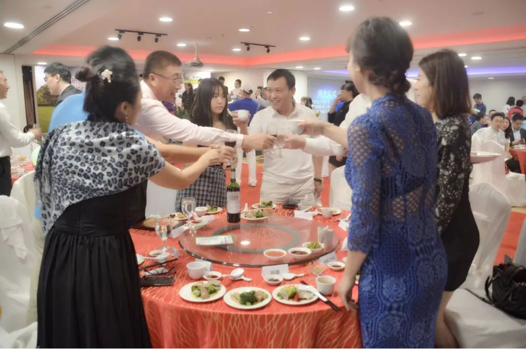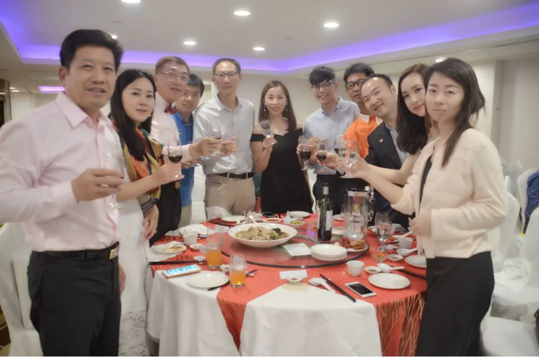 国会议员李美花博士、中国驻新加坡大使馆参赞曹士海先生、组委会主席杨照林先生 、组委会秘书长田箐博士携手各球队队长,为翰林杯晚宴祝酒