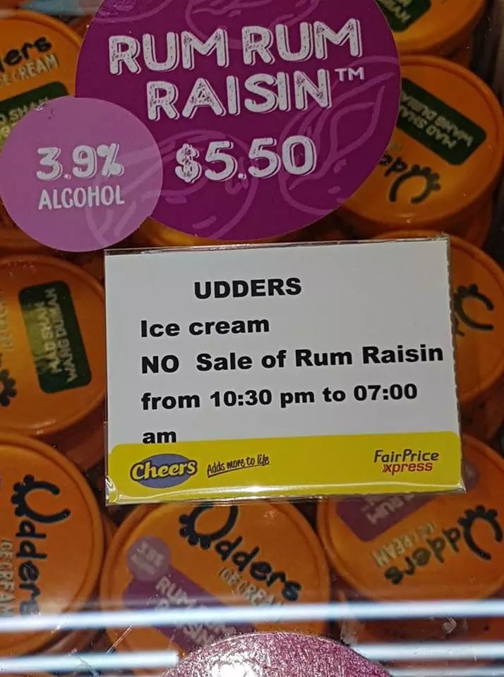 等一等,这个时间怎么这么熟悉~~不就是新加坡禁酒令的时间嘛(每天晚上10.30到早上7.00之间,超市不让卖酒),可是这跟冰淇淋有毛关系!