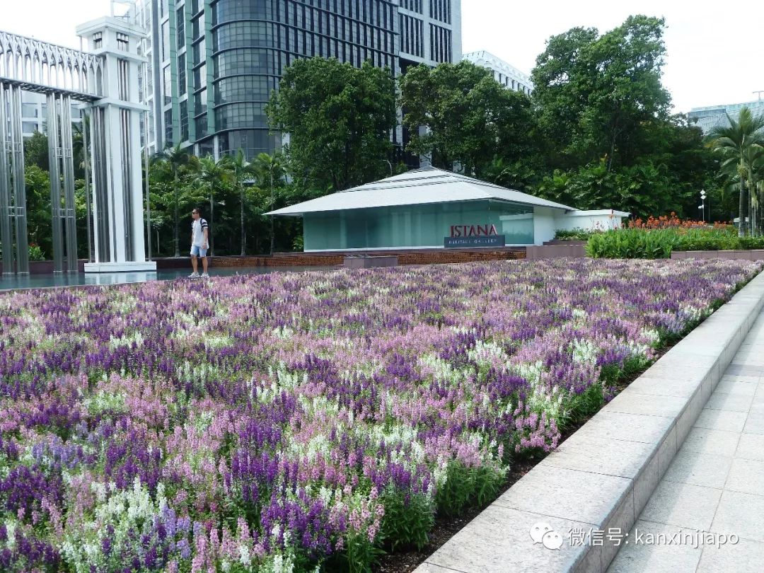 从多美歌地铁站出来,朝向乌节路商业街道方向,沿着人行道悠闲漫步。来到总统府对面的小花园,即刻被眼前一片锦绣花景逮住了目光!