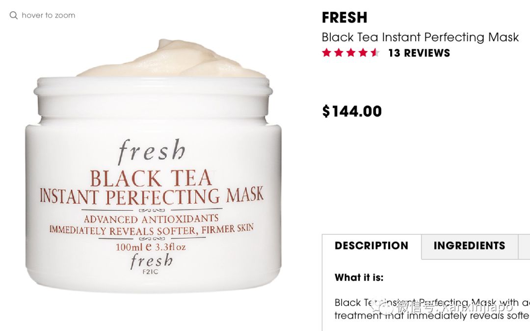 每当丝芙兰八折时,Fresh的面膜们肯定是最快进入缺货栏的产品之一。其中,很多人回购的就是这款红茶面膜。主要功效是保湿和抗氧化,特别合适在新加坡晒后使用,超细微的磨砂感上脸感觉很清凉,油皮也能用。