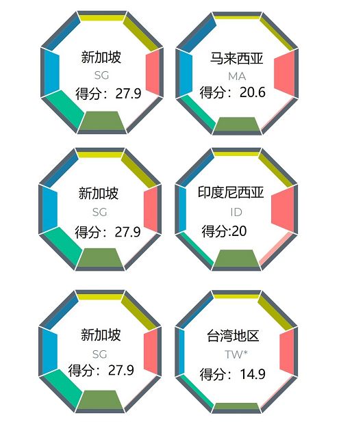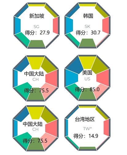 我们还将新加坡与其他国家和地区的得分,做了比较: