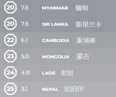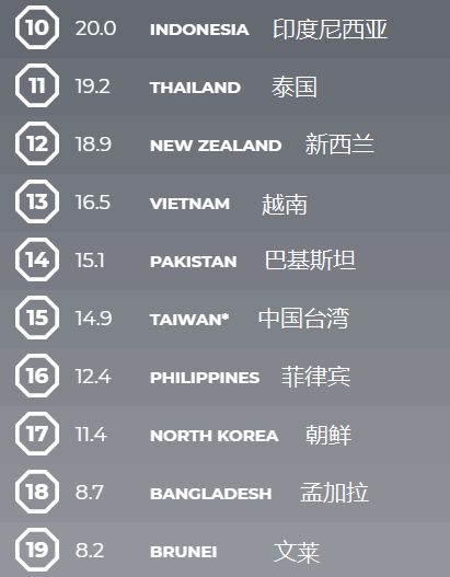 新加坡得了27.9分!虽然在满分是100分的情况下,看上去好像不及格,但却在亚太地区排名第8,是东南亚国家中排名最高的!