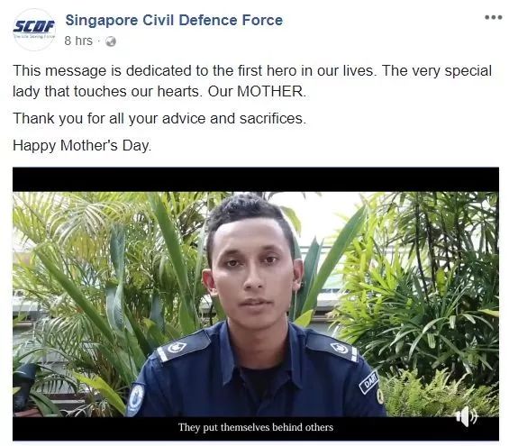 新加坡民防部队也特别录制了母亲节视频,感谢我们人生中的第一个英雄~