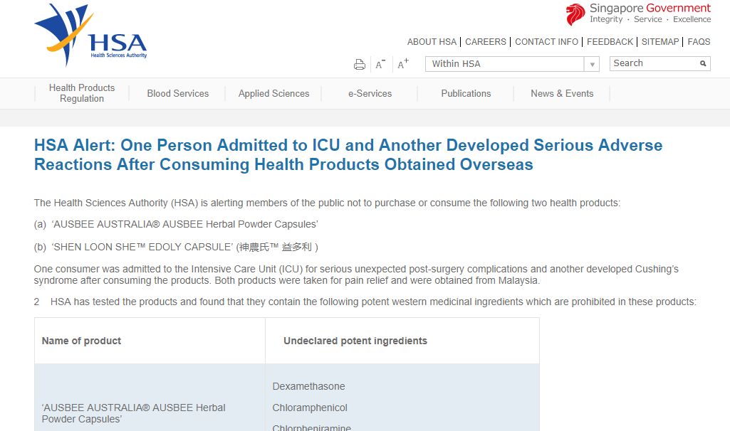 在新加坡售卖的这两款保健品有问题,食用者紧急送院!