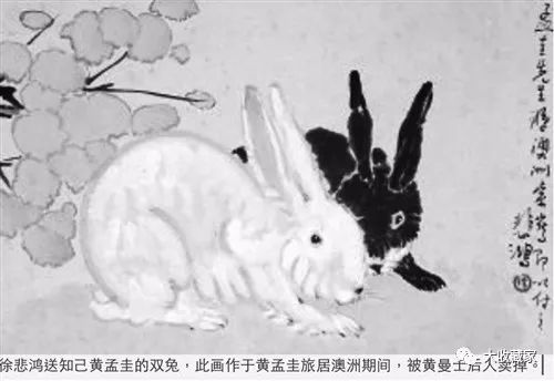 ▲徐悲鸿送给黄孟圭的《双兔》