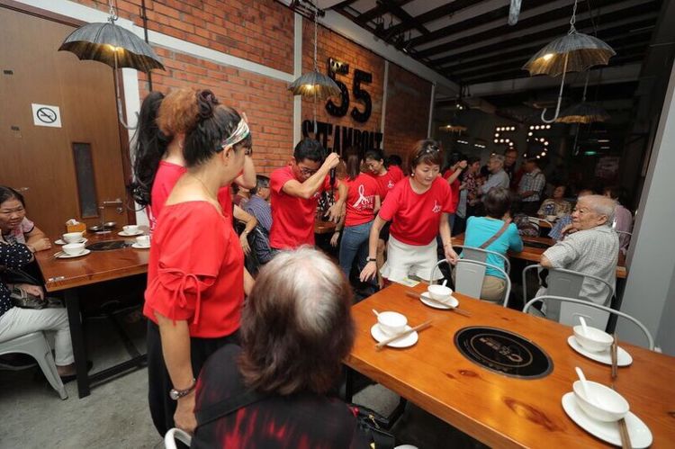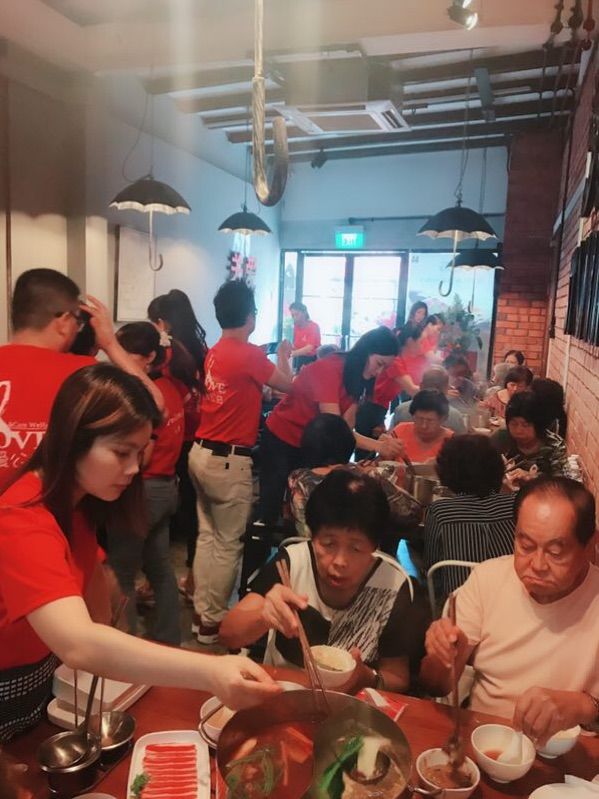 🙏轰动新加坡的二十人慈善团体成立了第一家以慈善为主导理念的慈善关爱55火锅,昨天开业午宴邀请三十二位独居老人参加,我们将定期邀请乐龄老人免费品尝关爱55火锅,也会将纯利润的15%捐助慈善事业,希望更多的爱心人士参与我们的爱心大家庭,我们将与你一起分享慈善的快乐,我们的宗旨是【关爱关爱与你同在、关爱关爱无处不在】有爱心的朋友家人们你们来关爱55的消费也是对慈善事业的付出与奉献哦!感恩所有与慈善同行的朋友们家人们🙏🙏希望我们一起来善心善信善行🙏🙏