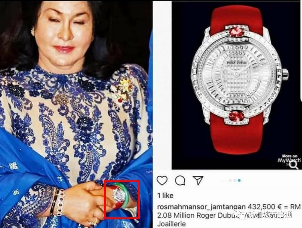这位在纳吉心目中地位崇高的“纳夫人”每次出现在公众面前总是珠光宝气、精心打扮,她佩戴的腕表最贵的一只是要价高达约68万9000新元的罗杰杜彼(Roger Dubuis)。