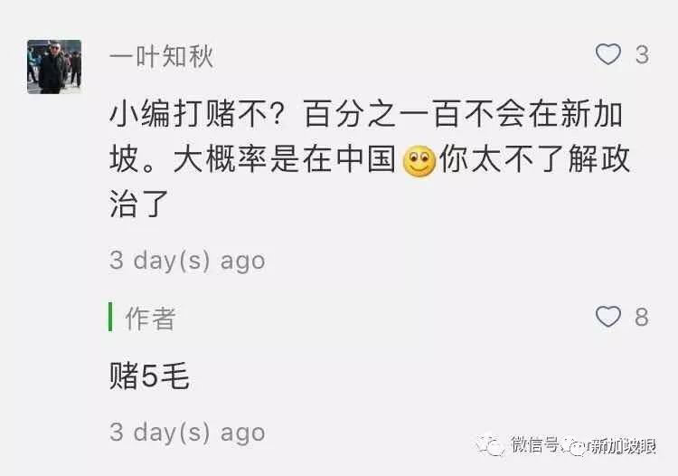 自从美朝峰会“起死回生”之后,新加坡眼总算战战兢兢地暂时收回了和网友打赌的那5毛钱。