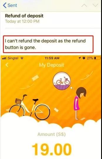 oBike的APP没有退押金的按键, email也不怎么回复…这是要用户肿么办??