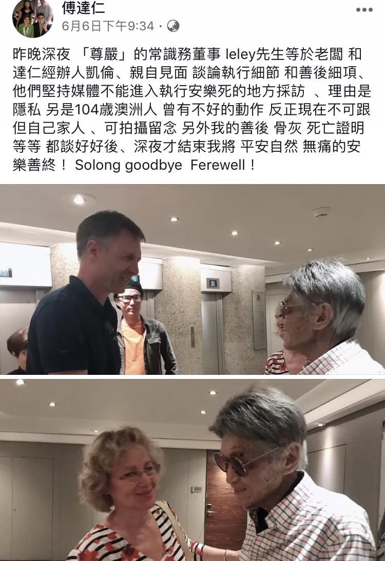 (6月6日深夜,傅达仁发布最后一条Facebook。他说:我将平安自然、无痛的安乐善终。solong goodbye farewell!这漫长的告别。)