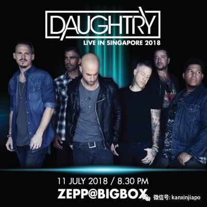 备注:该团队主唱Chris Daughtry曾是2006年美国偶像歌唱比赛的参赛选手之一,最后在决赛里拿到了第4名的优异好成绩!这将是该团队首次来新加坡巡演!!