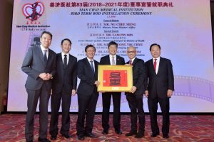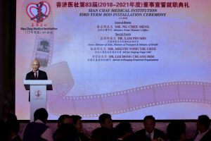 在7月1日晚上,善济医社在大巴窑战备军协俱乐部欢喜楼,举办了第83届董事宣誓就职典礼。