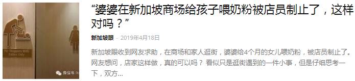 今年4月,还有一位网友向我们求助,说在新加坡商场里,喂奶粉也是不被允许的......