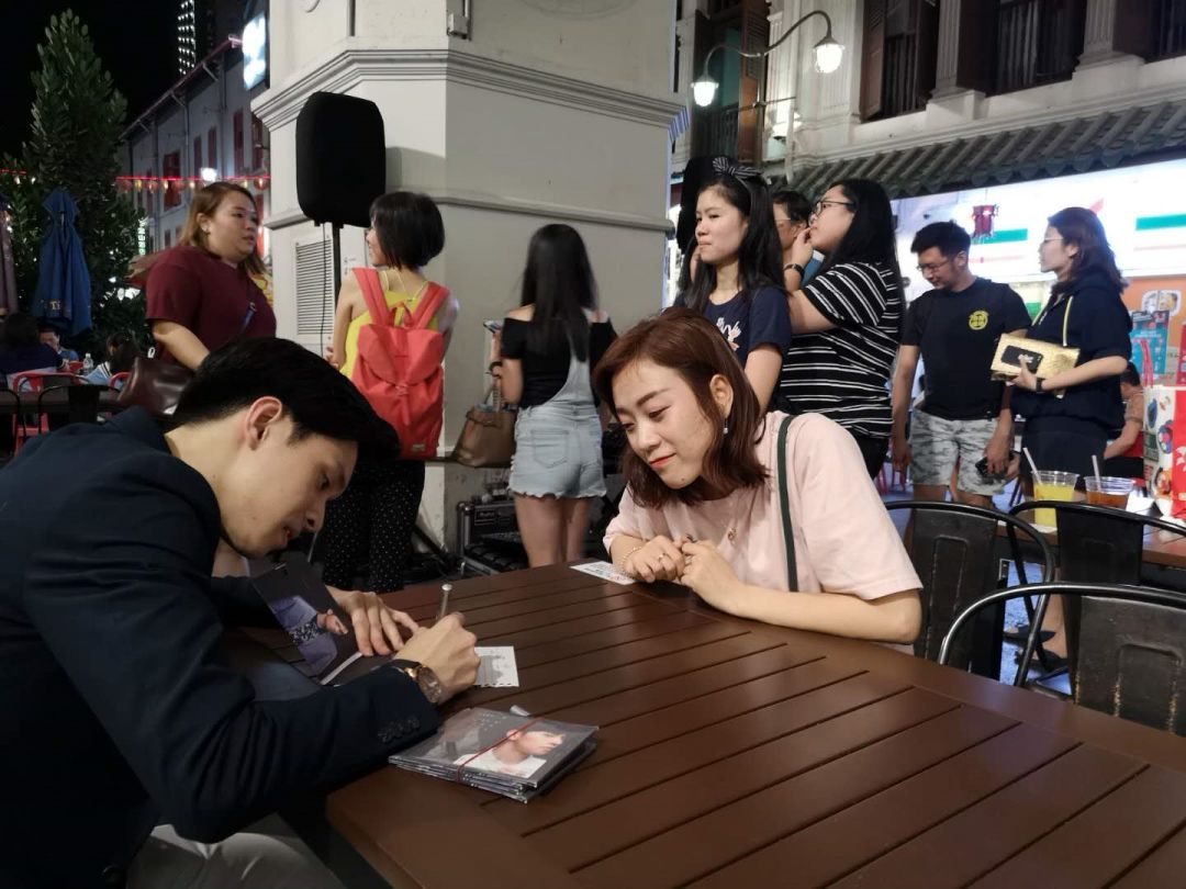 演出结束后,有许多女生化身迷妹,购买他的唱片支持他~