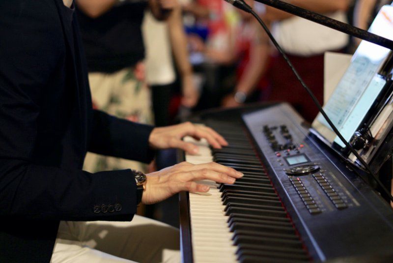 等到差不多7点多的时候,小哥匆匆赶来,开始调试音响等各种设备。之后,他就开始演唱啦~