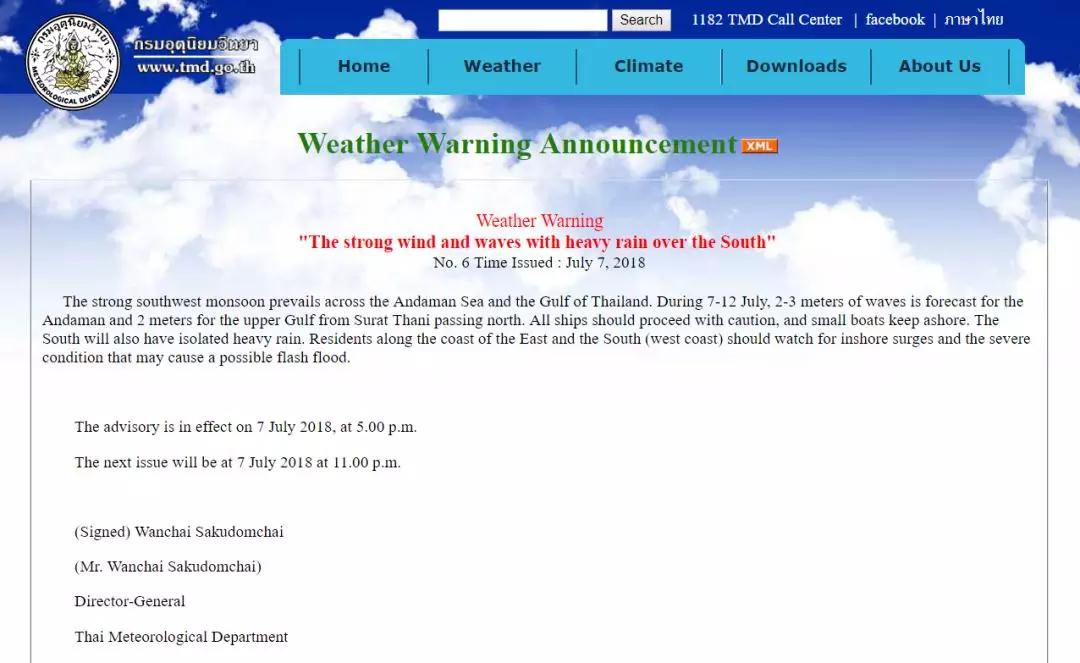 据泰国当局指出,气象局发出了在7月4日-6日之间不宜出海的警告。但船只仍旧出行。